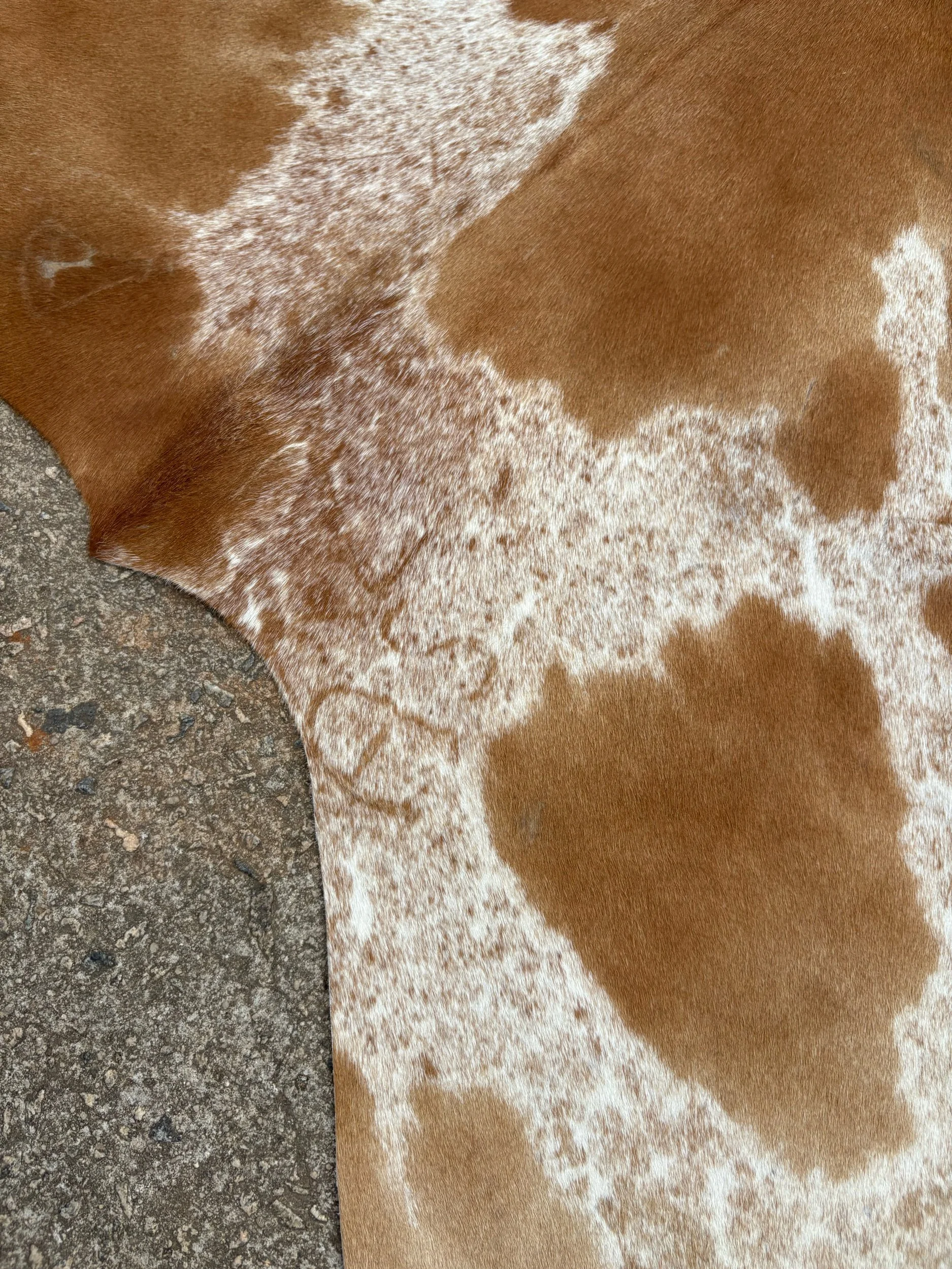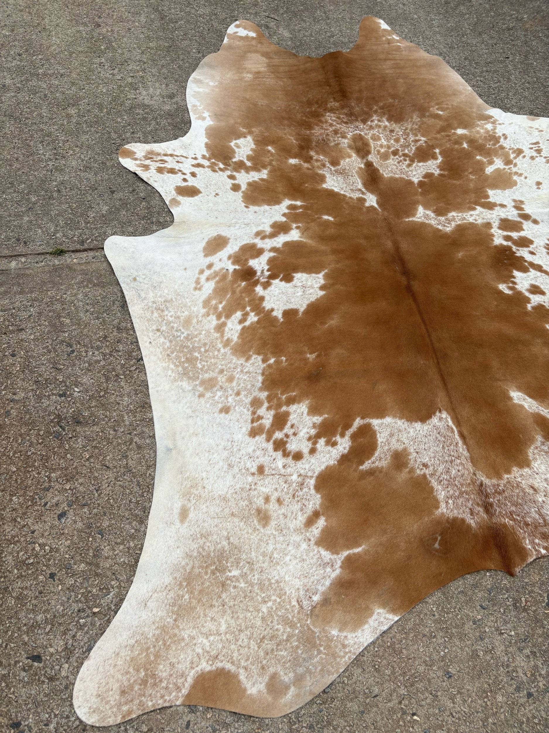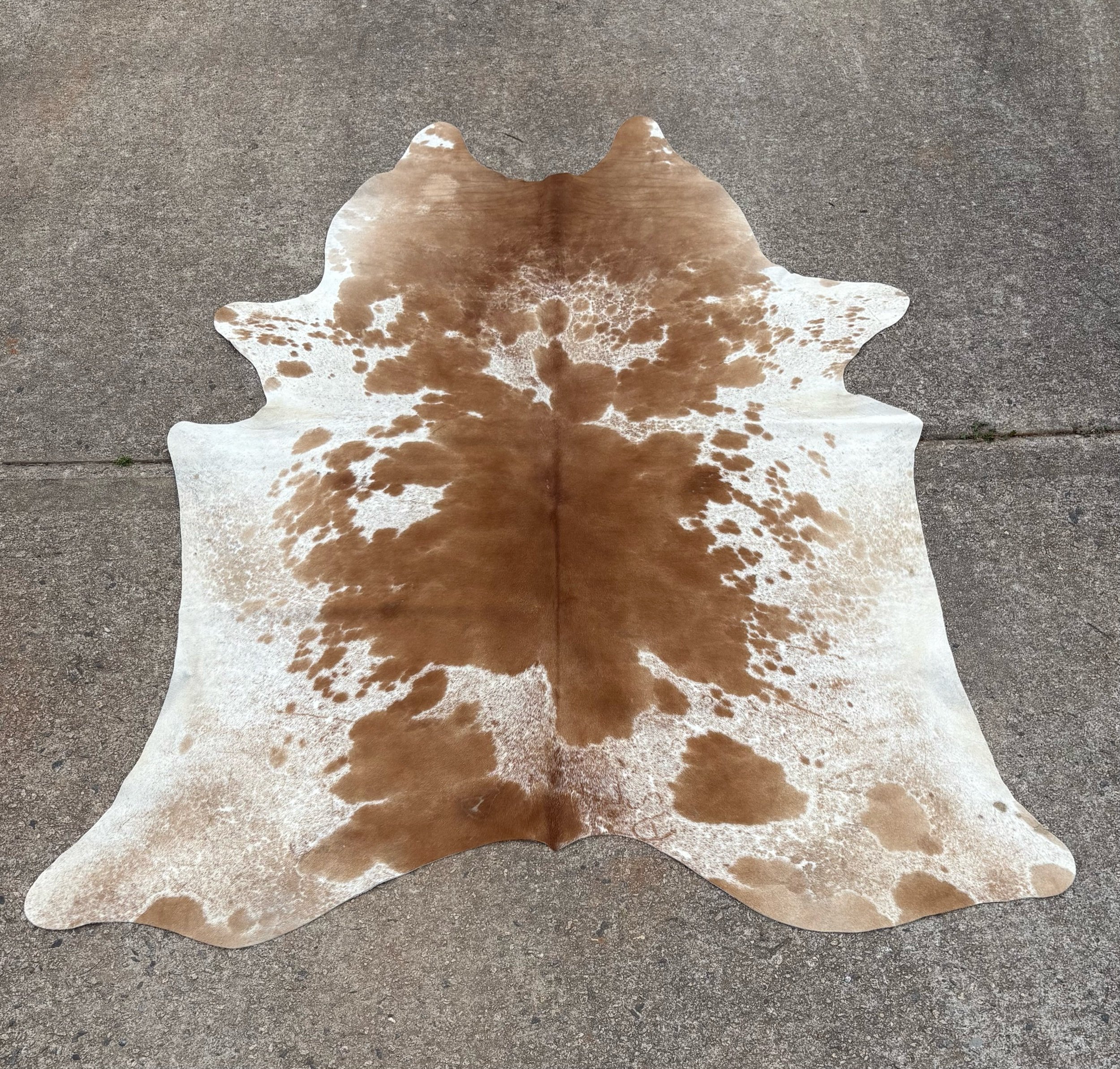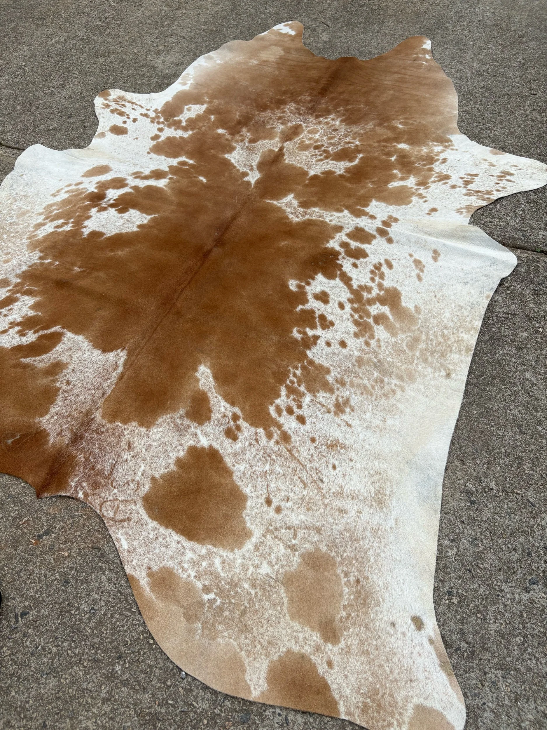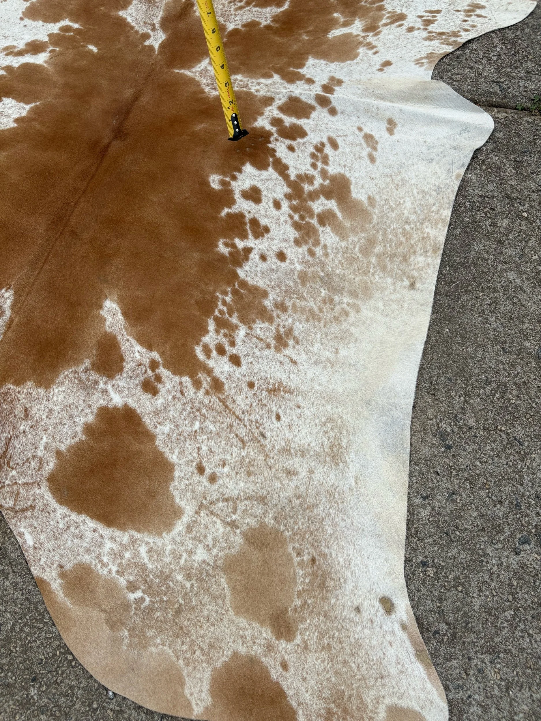 Hides are photographed out in natural lighting. When checking out, the rug in the listing is the hide you will receive. Our hides are natural and therefore may contain scars, brands. They’re by-products of the beef industry, high quality, and Brazilian tanned. Measurements are taken of each individually, please see photo for how measurements have been taken.B: 65”