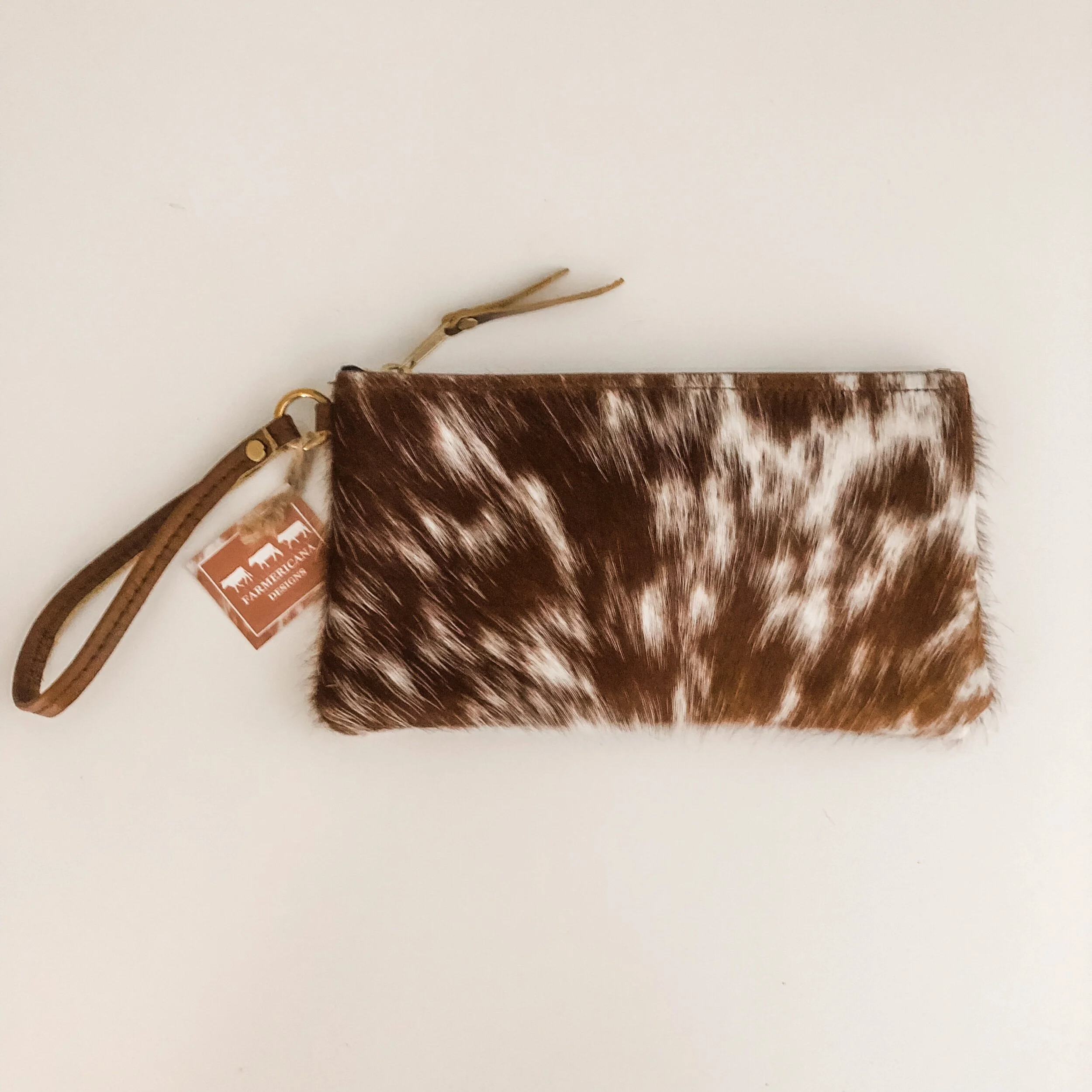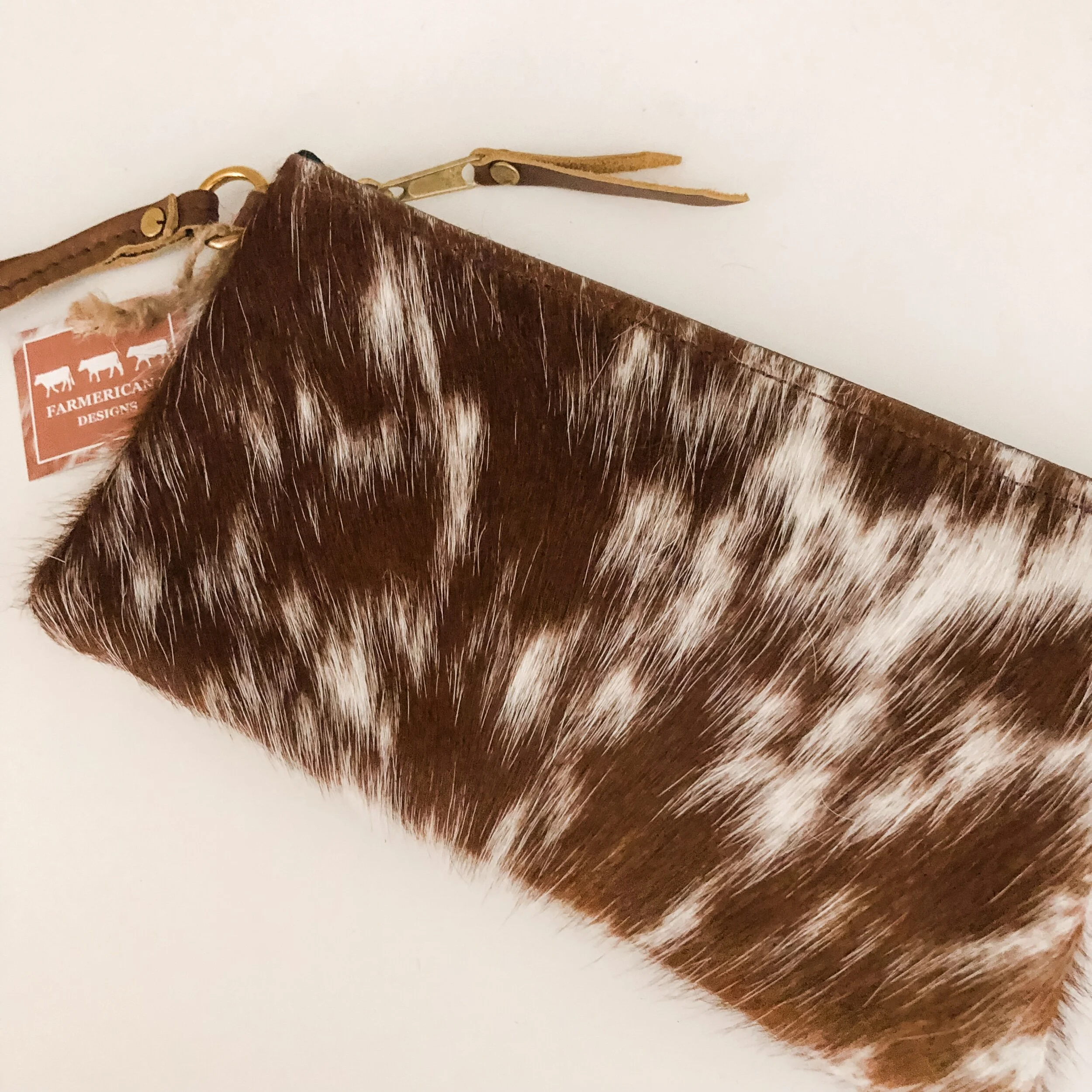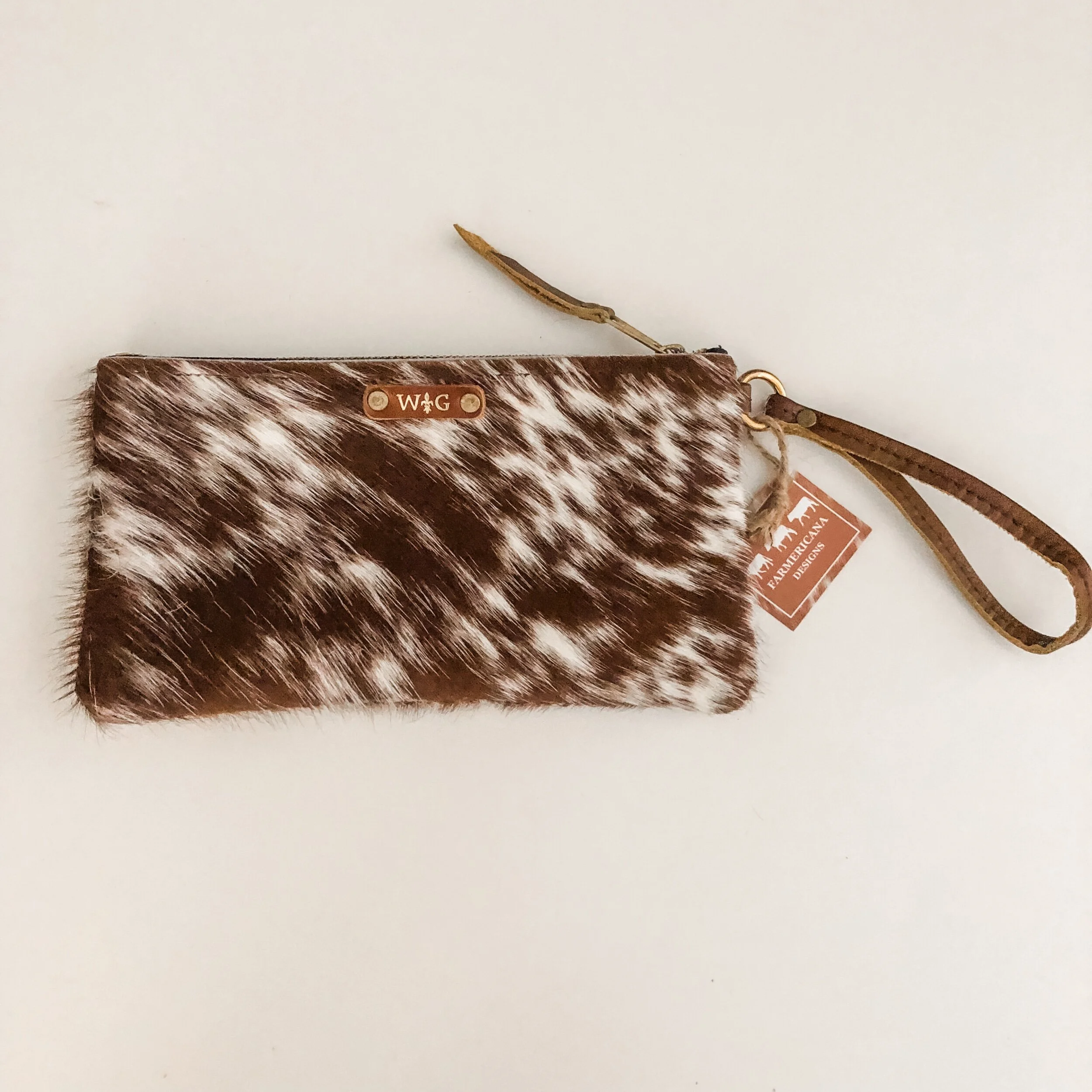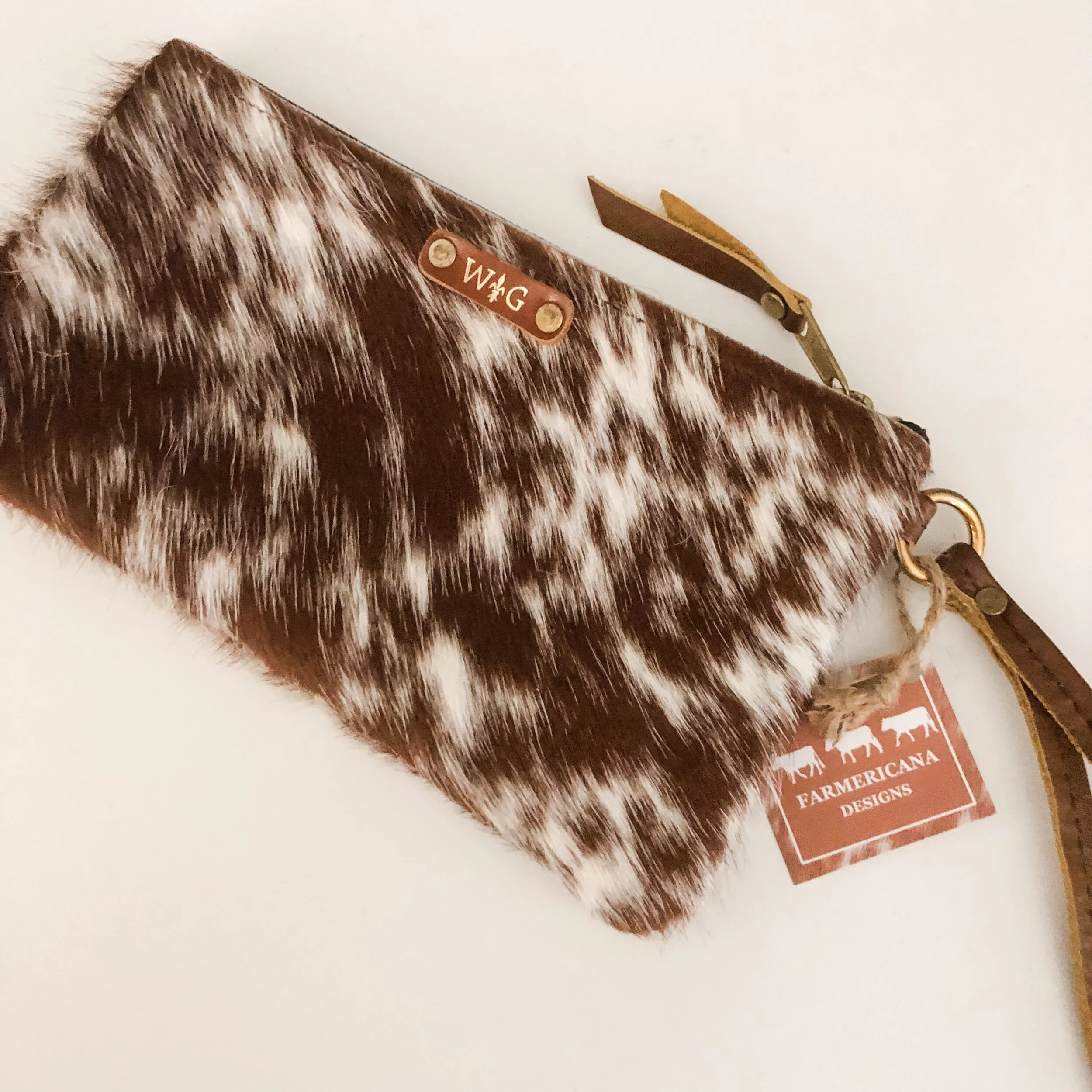Wristlet - Spotted Gray, Brown & White Cowhide