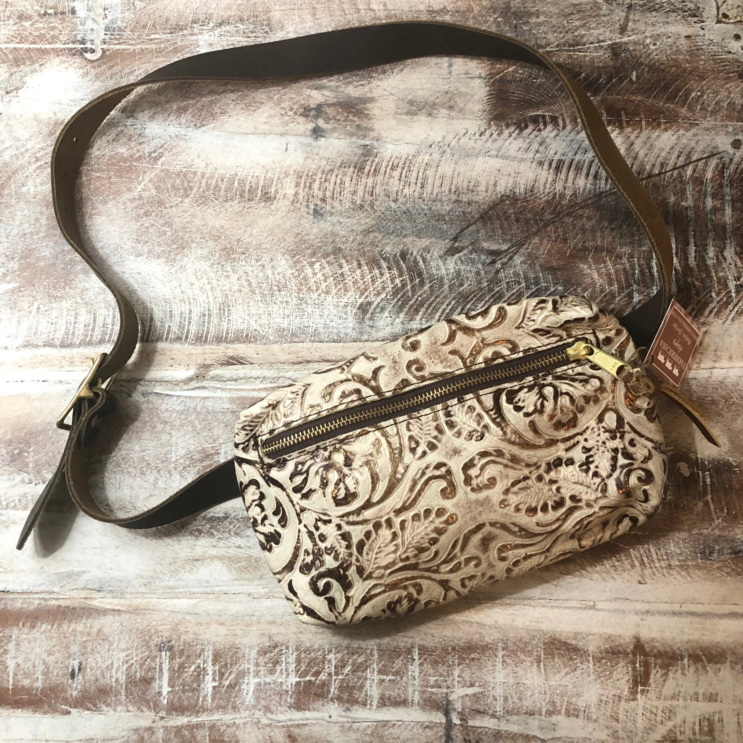 Handcrafted Embossed Leather Fanny Pack / Belt Bag