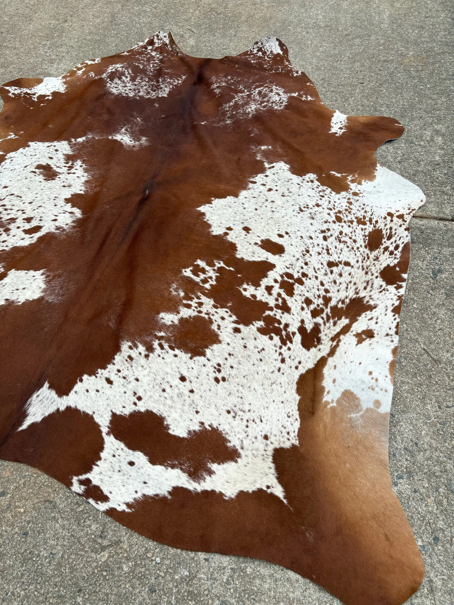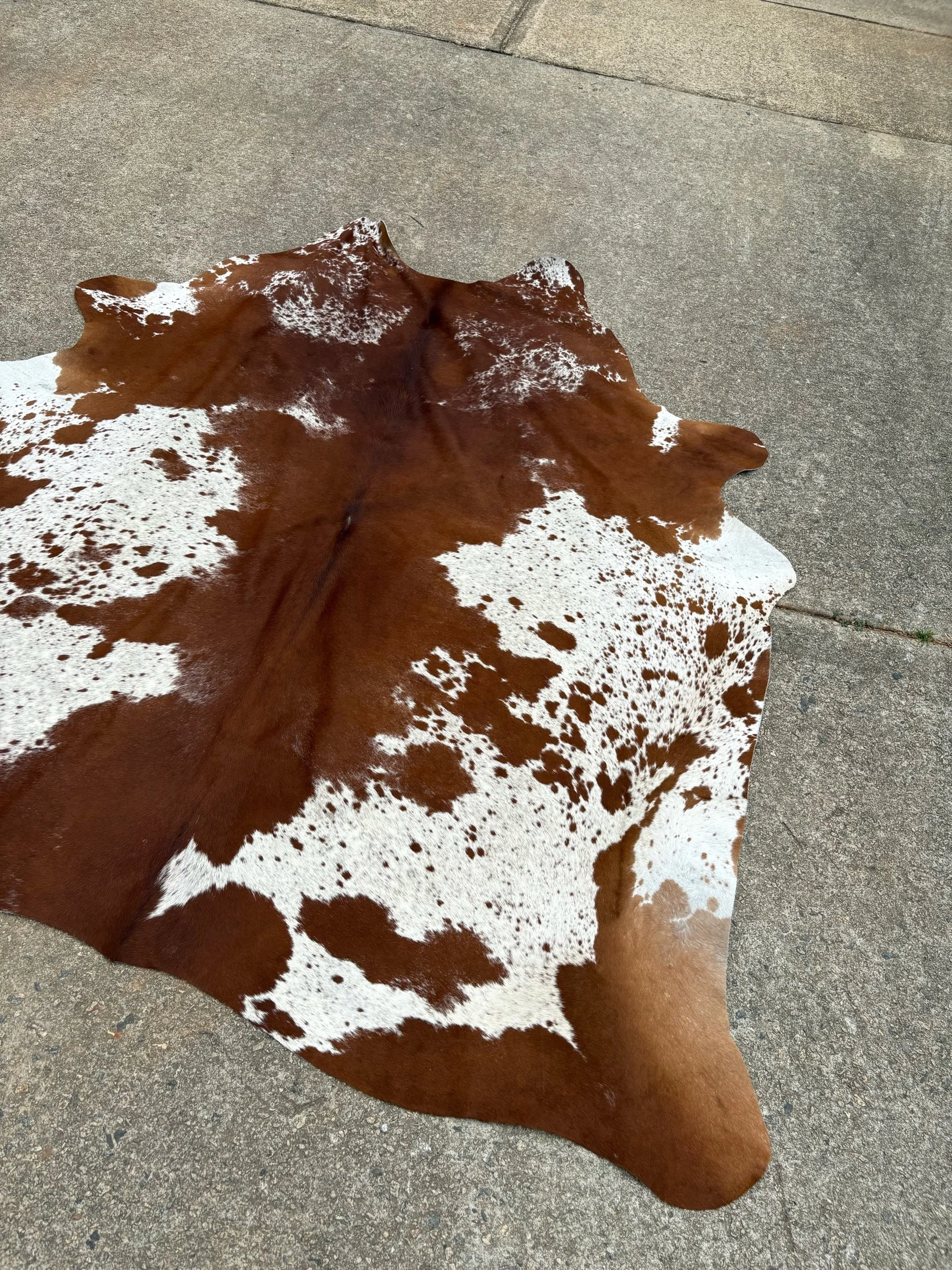 Hides are photographed out in natural lighting. When checking out, the rug in the listing is the hide you will receive. Our hides are natural and therefore may contain scars, brands. They’re by-products of the beef industry, high quality, and Brazilian tanned. Measurements are taken of each individually, please see photo for how measurements have been taken.