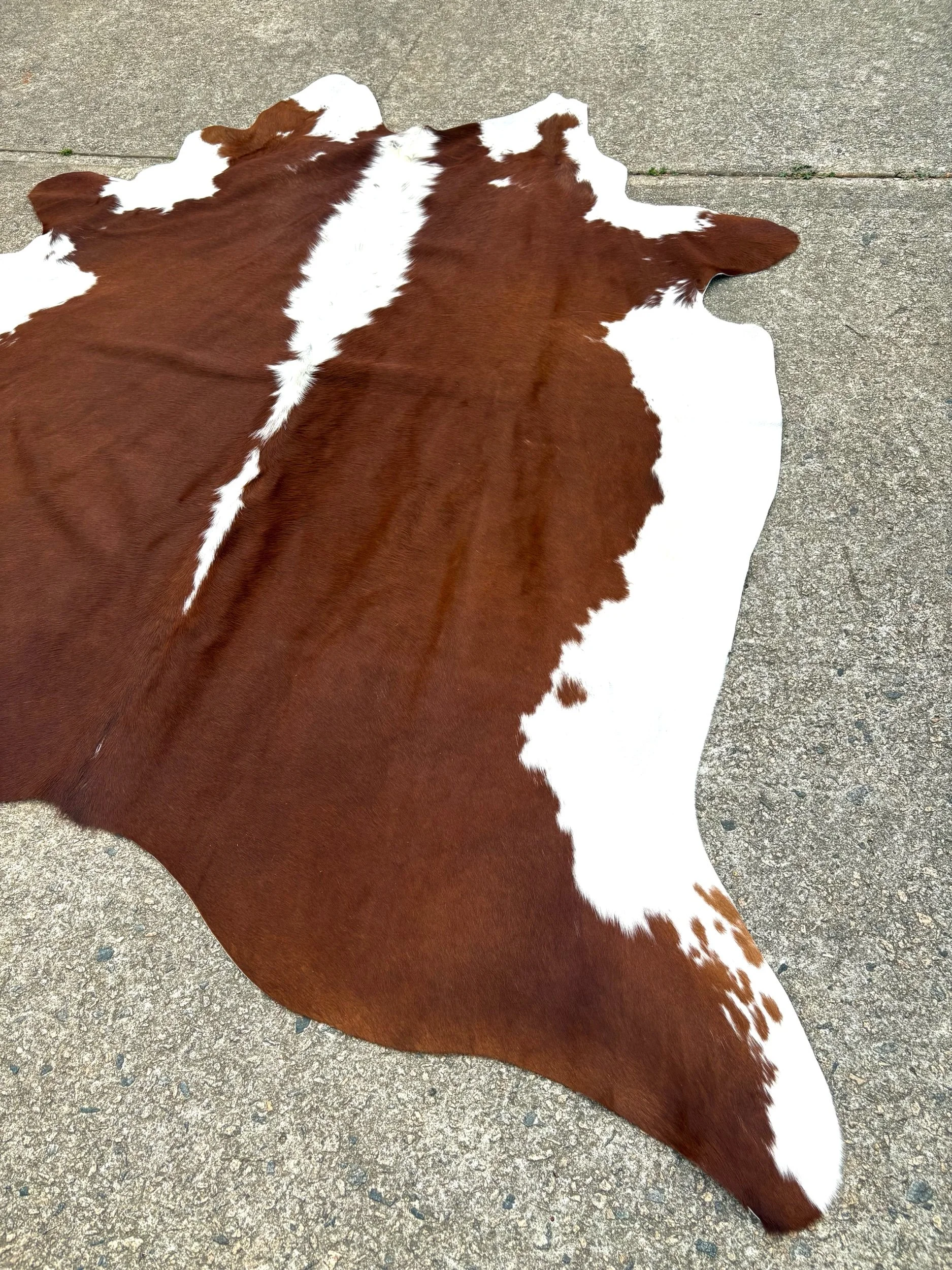 Hides are photographed out in natural lighting. When checking out, the rug in the listing is the hide you will receive. Our hides are natural and therefore may contain scars, brands. They’re by-products of the beef industry, high quality, and Brazilian tanned. Measurements are taken of each individually, please see photo for how measurements have been taken.
